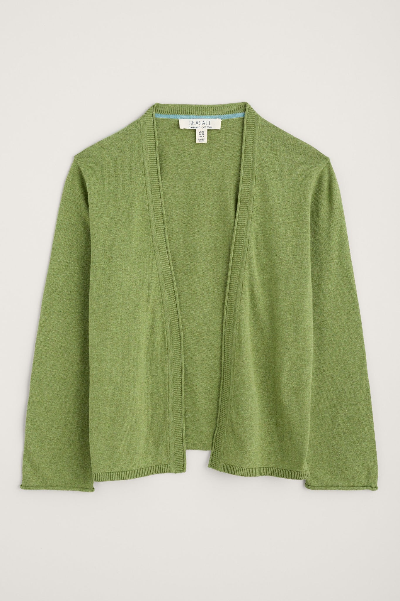 This little cardi is the perfect summer layer, it is a lightweight, semi fitted style that falls to the natural waist. Made from soft cotton with 3/4 length sleeves and a subtle rolled edge finish on the placket and cuffs for a feminine touch.