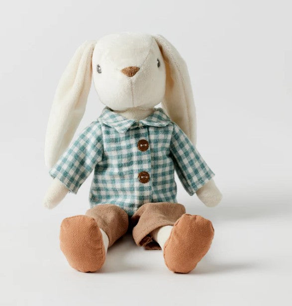 With his adorable little outfit, Huey The Bunny is sure to become a child’s favourite toy. Made from soft velour with an embroidered face and child-safe trimmings, this soft toy is ideal for cuddling. His floppy ears come in handy for little hands to carry them about on their daily adventures.
