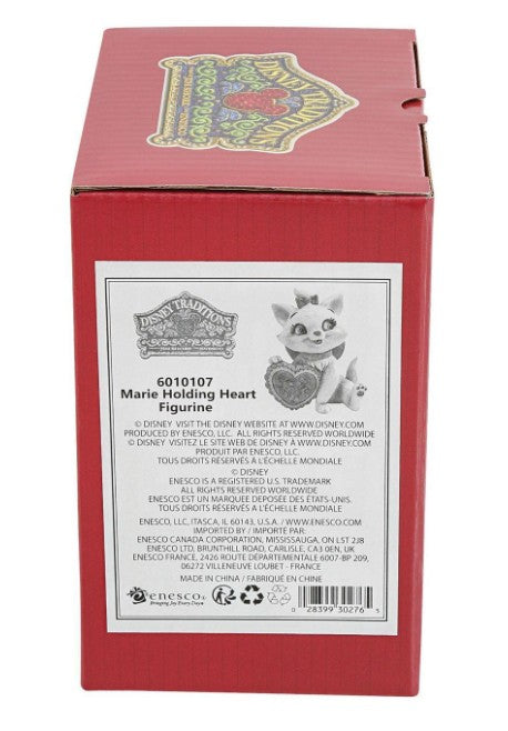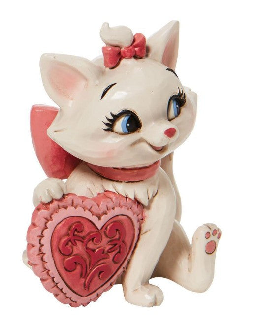 The 1970 Walt Disney classic, The Aristocats, followed three kittens and their mother across the Parisian countryside after being cat-napped from their home. Marie, the only daughter of the bunch, holds a pink heart in this sweet Jim Shore figurine.