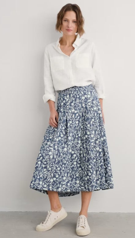 Woven from soft cotton chambray, Seasalt's Jamboree Skirt feels silky and cool against the skin. We’ve given this midi length style soft pleats for plenty of movement, so it’s full and floaty with a flattering waistband and concealed side zip. We like it best with a simple organic cotton top.