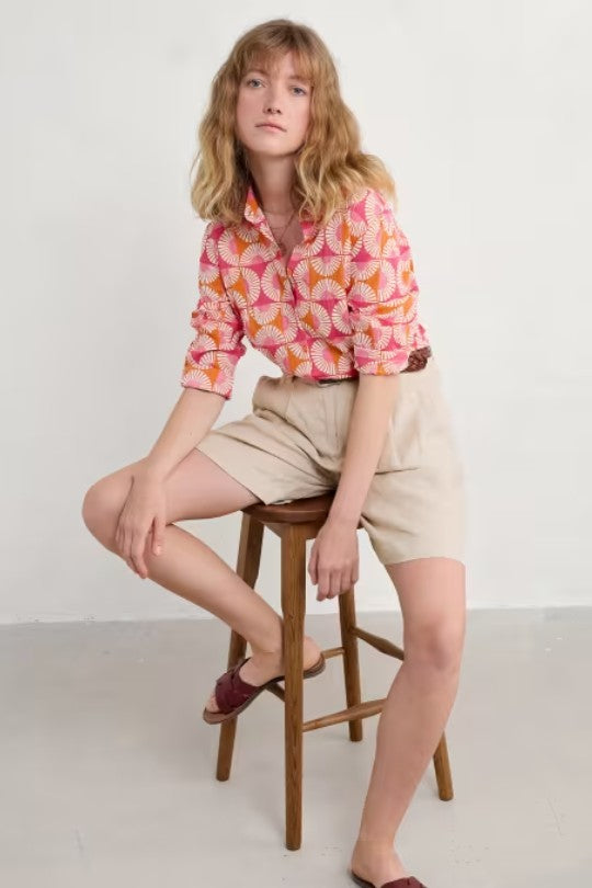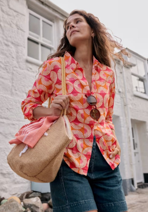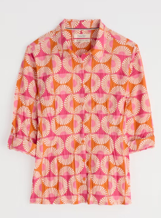 Our Larissa Shirt is a year-round favourite. Made from the softest organic cotton with a casual crinkled appearance, the beauty of this shirt is that it doesn’t need ironing – just wash and twist to keep the crinkle. This semi-fitted style is easy-to-style and comfortable, with long sleeves a button loops so you can roll up the cuffs to change your look. Each season, it showcases some of our most-loved prints, created by our talented textile designers.