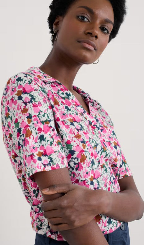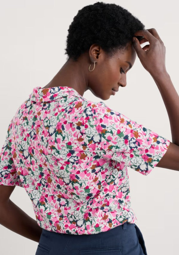 The perfect piece for summer getaways, the Misty sky Shirt by Seasalt. We'll pair the easy print on this collared V-neck shirt with plain cropped trousers or shorts. The soft, skimming jersey blend means it's as cool and comfortable as a T-shirt.