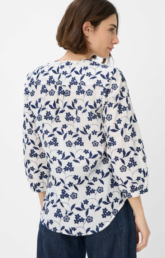 The stunning Velia shirt created by Brax is made with the finest cotton and features delicate floral embroidery in navy blue for a touch of elegance and style.