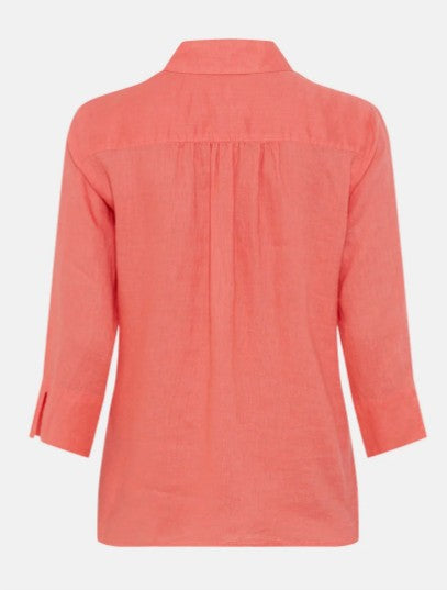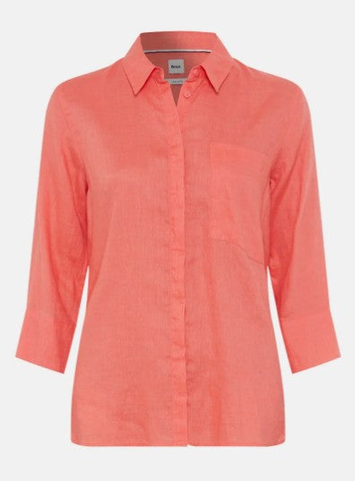 Discover the summery lightness of the Vicky blouse by Brax. This classic women's blouse is an indispensable all-rounder in every wardrobe for the upcoming fashion season. Featuring a flared silhouette, a stylish shirt collar, and 3/4 sleeves, it offers a polished yet airy look. The concealed button placket ensures a clean finish, while the patch breast pocket, subtle gathers, and hem slits provide a feminine touch. Crafted from 100% linen, the material guarantees comfort & coolness on warm days.