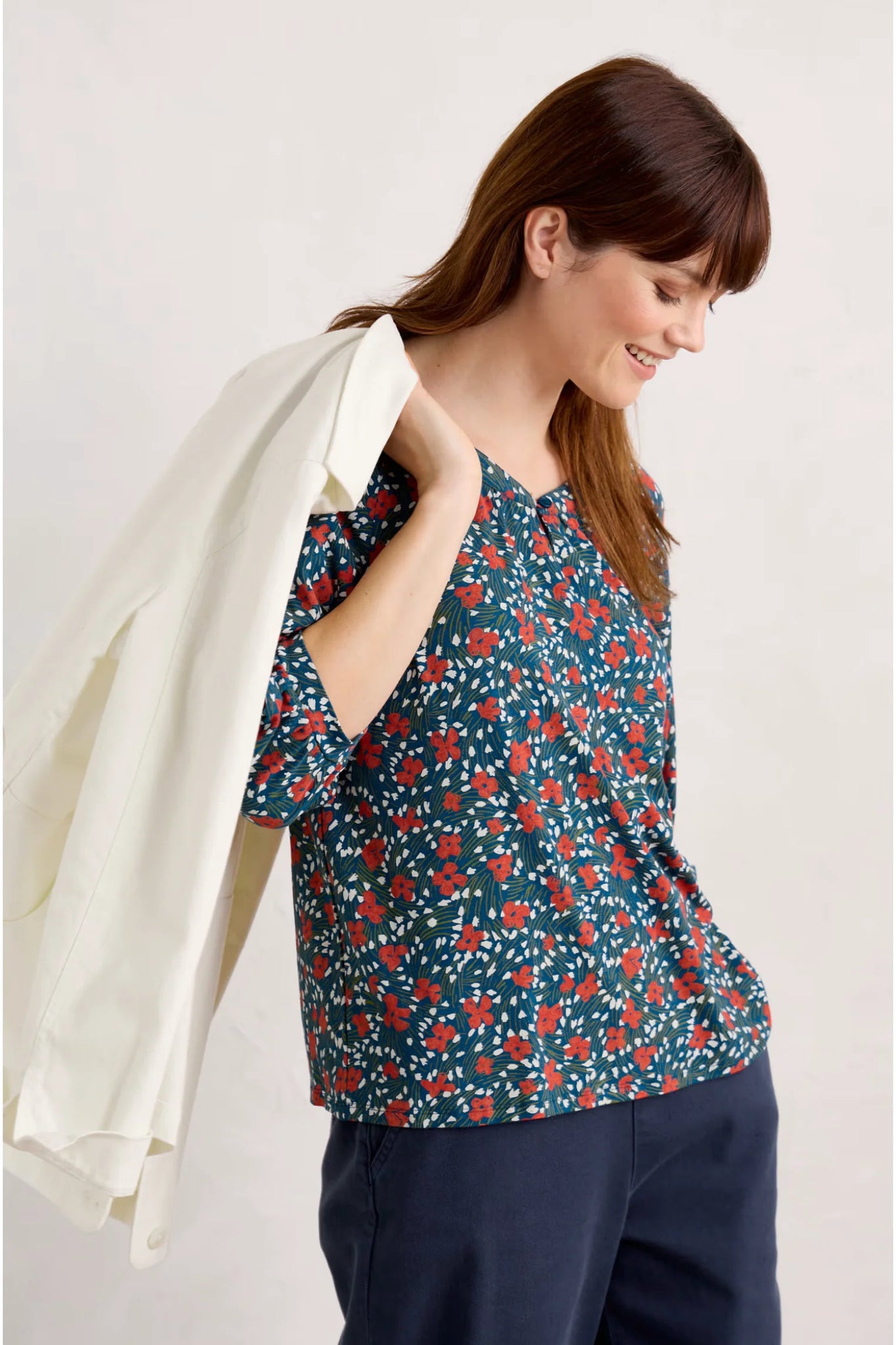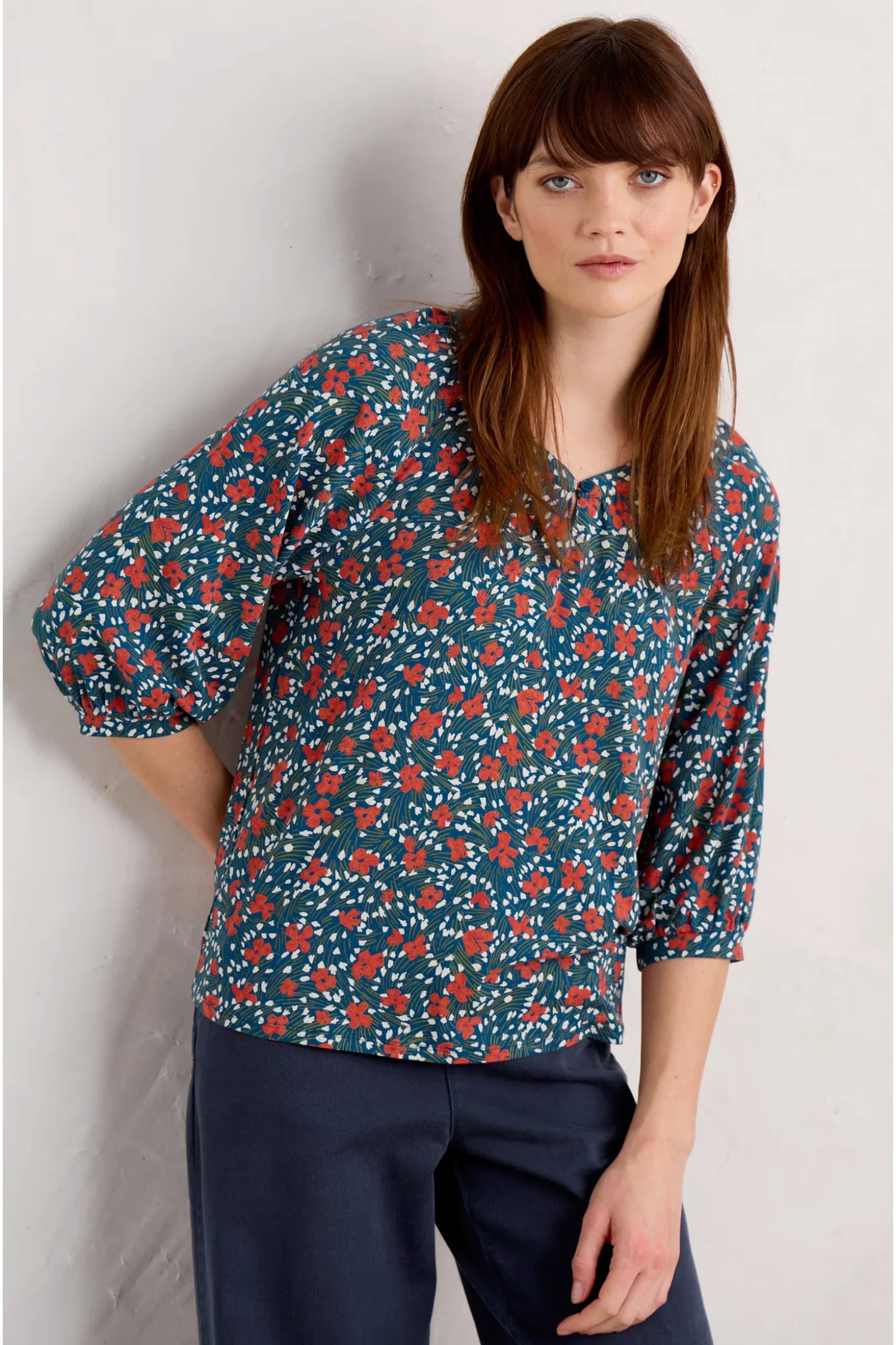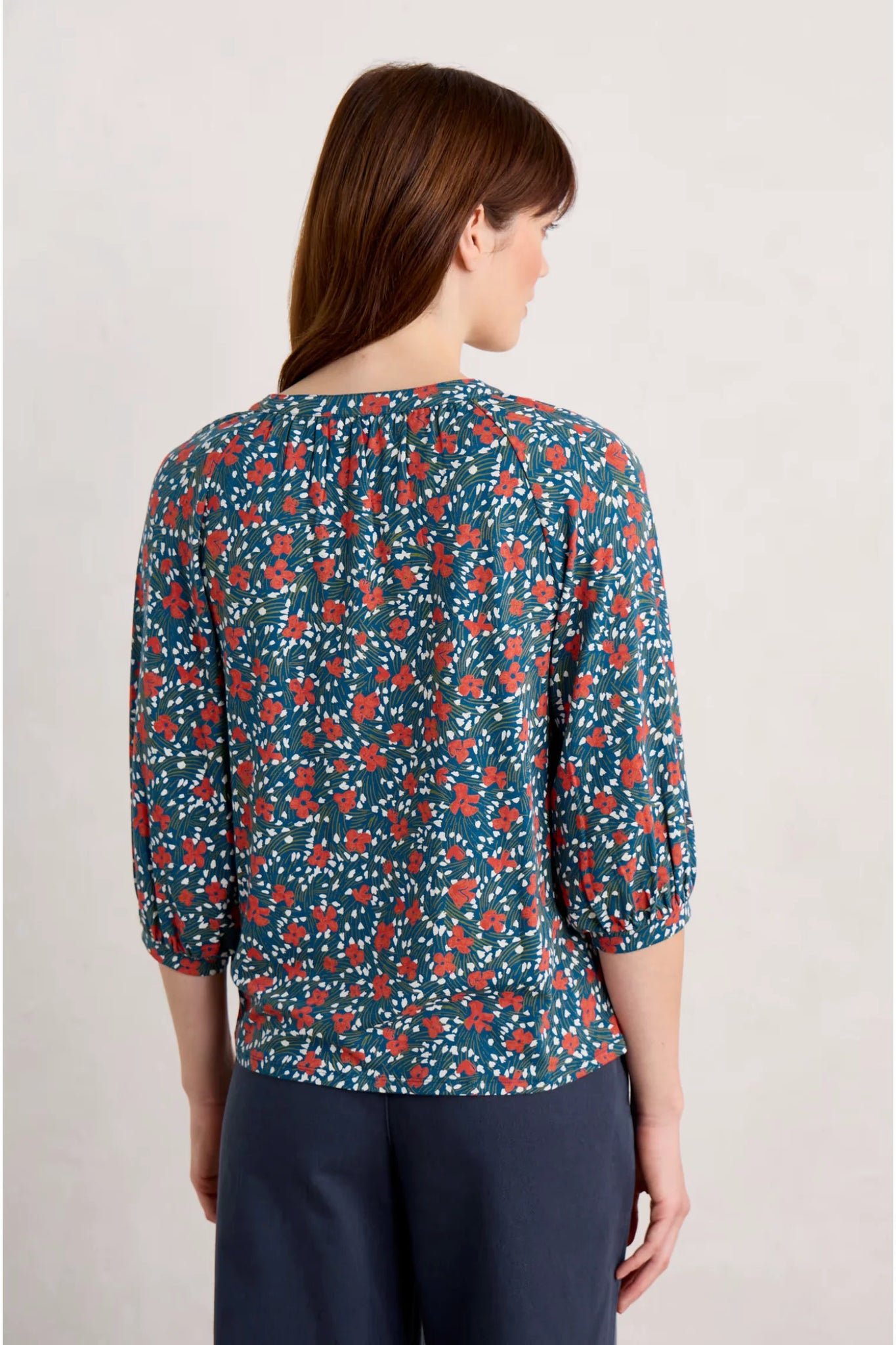 Discover the Garlanding Top, a beautifully feminine piece designed for effortless everyday style. Featuring 3/4 blouson sleeves for an airy feel, intricate gathers at the neck, and a flowing A-line fit, this top offers a combination of comfort and elegance. Crafted from a soft bamboo cotton blend, it boasts a lightweight feel and a luxurious drape, making it the perfect choice for any occasion.