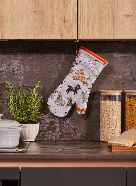This Dog Days Oven Glove brings heaps of puppy personality when entertaining friends and family for large dinners! It features a ragtag band of playful pooches of all shapes, sizes and colours. Inspired by the iconic sketches of Quentin Blake, the print uses scratchy black crayons and rough gouache brushstrokes to bring each doggy to life.