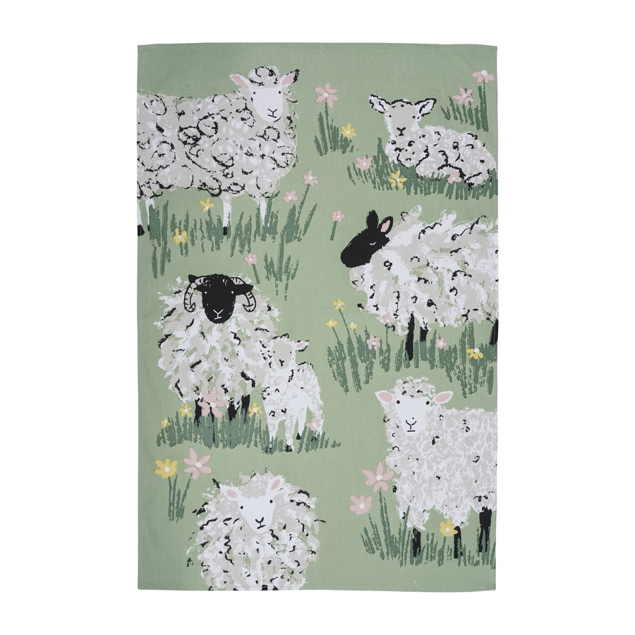 This Woolly Sheep Tea Towel brings pastoral charm to cooking, for yourself or entertaining friends and family! It features hand-illustrated sheep and their newborn lambs relaxing in a meadow full of flowers.
