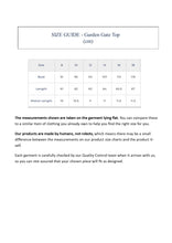 A pretty little top made from soft, cool cotton voile. Our Garden Gate top is semi-fitted with a scoop neck and cap sleeves. It's finished off with gentle gathers on the front to give it shape, and a keyhole opening with button loop fastening on the back.